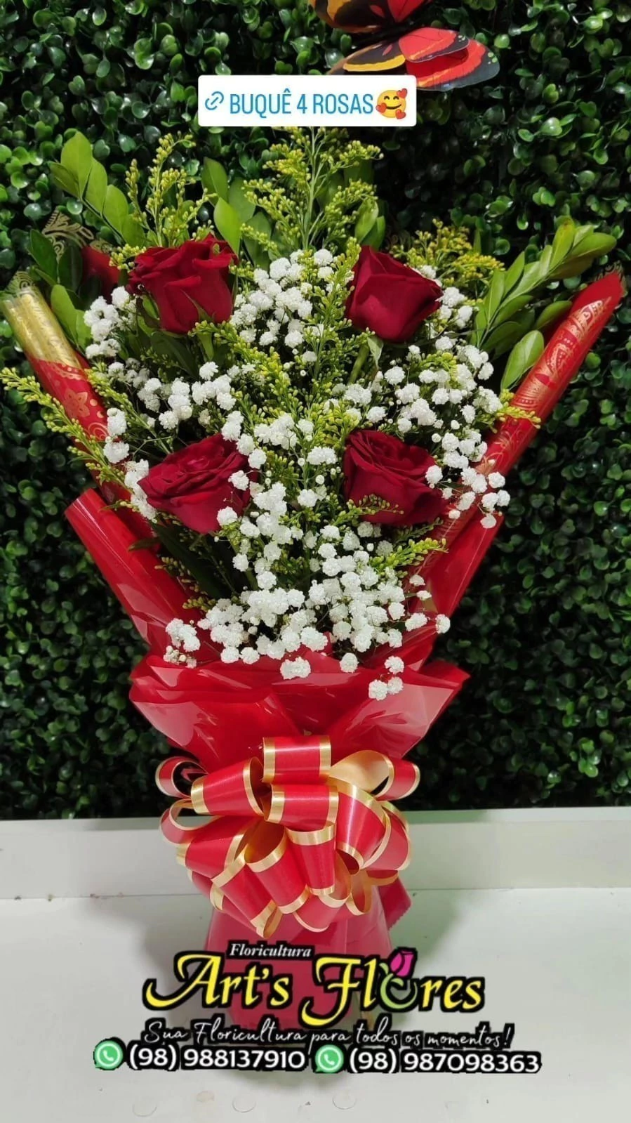 BUQUÊ DE 4 ROSAS VERMELHAS